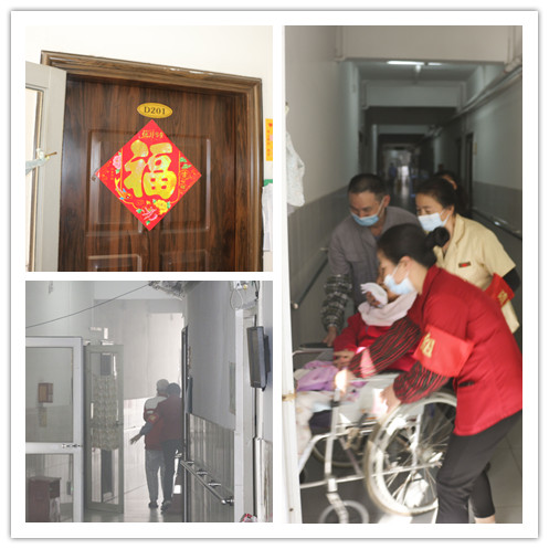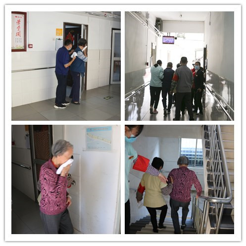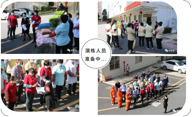 本次演练以添寿楼二楼为假设起火点,并由其所在楼层的班长,保健医生,护工及其它部门的相关员工组成演练人员,分别设置为灭火行动组,水枪组,疏散引导组,物资保障组,医疗救护组,摄影宣教组,现场保护检查组,工程保障组等,各组分工明确,井然有序完成了演练,现在让我们一同回顾当天的演练活动现场的画面。