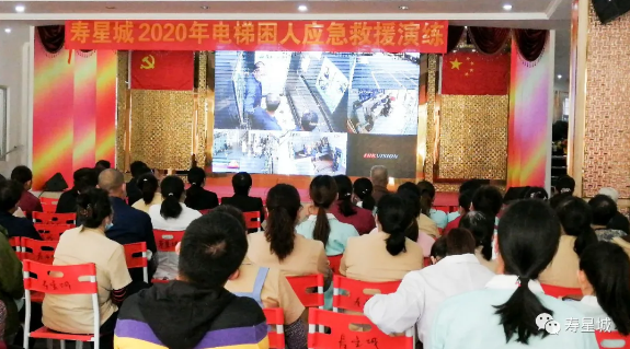 部门员工代表和入住长者代表近150人观摩本次演练活动并观看类似演练视频,且在活动最后执行指挥吴主任发表讲话,他强调类似的安全演练是寿星城的重点工作,同时强调务必将今天学到的电梯安全常识传达到每个员工和各位入住长者。在演练结束后,各演练小组成员参与了该次总结会议,总结这次演练成果,并强调日后的工作重点,防患于未然。