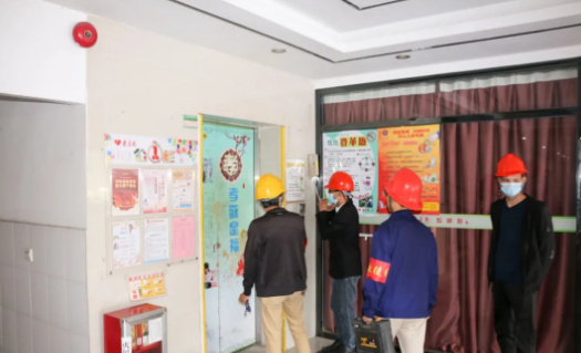 扮演被困人员的3名志愿者走入电梯后,遇到电梯故障,被困人员当即按下电梯轿厢五方通话报警按钮报警,与安全监控中心应急值守人员通话,告知被困情况和电梯所处楼栋,请求救援。