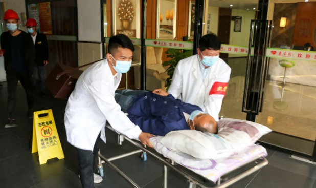 被困梯人员救出后,医疗救护组对其身体进行检查,询问身体有无不适感觉,如遇突发疾病或不适感觉,组长立即报告并根据实际情况送往医院治疗。