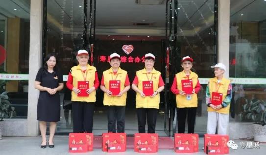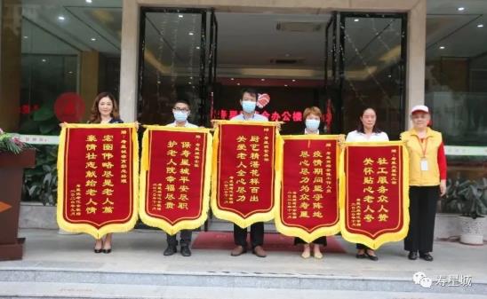 老代会代表为徐育彩女士、物业部保安班、营养部、社工部、寿星商场赠送锦旗