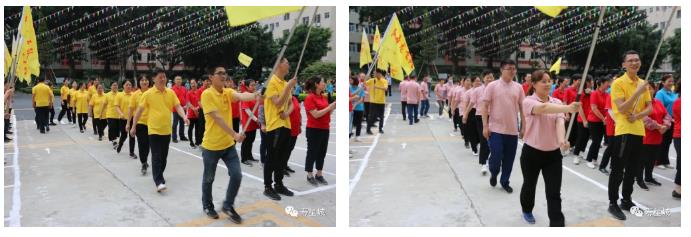 十一支队伍各自喊着口号,摆着队形,将最饱满自信的精神面貌展示给大家