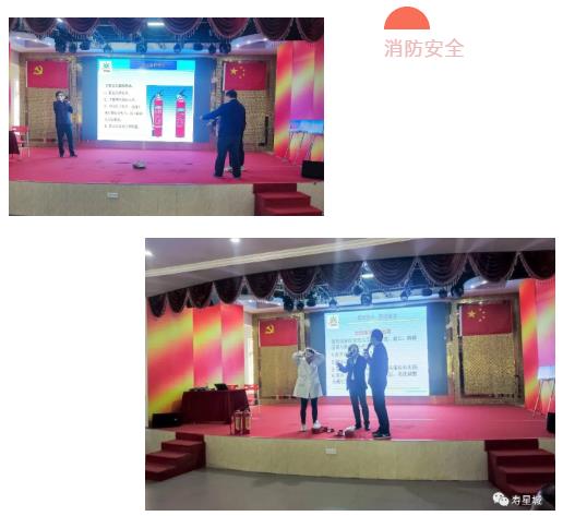 员工上台演示灭火器使用方法以及防毒面具的佩戴方法