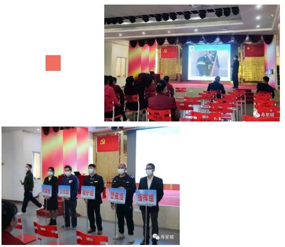 全体人员成功完成疏散演练后,于寿星城铜钱广场集合进行灭火器的实操培训。