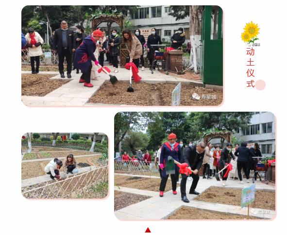揭牌仪式完成后,徐总、孙校长、谢总以及老人和员工代表进行了“百菜园”的动土仪式。