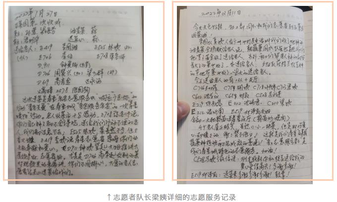 每次志愿服务之后,作为寿星城老年志愿者队长的梁姨都会详细做好老年志愿服务的记录,里面清晰的记载了每次志愿服务的时间、服务对象还有每次院区老人在接受志愿服务之后的充满感激之情的对话……
