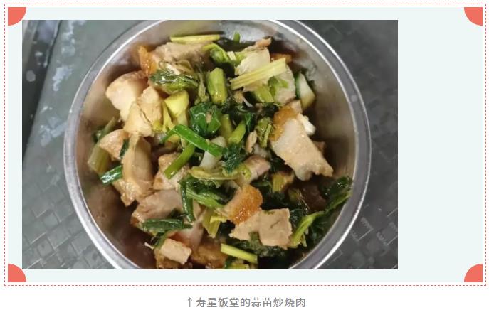 志愿者队还将一部分蒜苗送到饭堂,饭堂在接收到蒜苗之后也立马敲定了当天新的的菜式“蒜苗炒烧肉”,说干就干,寿星蔬菜配着美味佳肴让在住老人在食堂吃到了属于寿星城自己独有的味道。