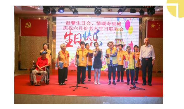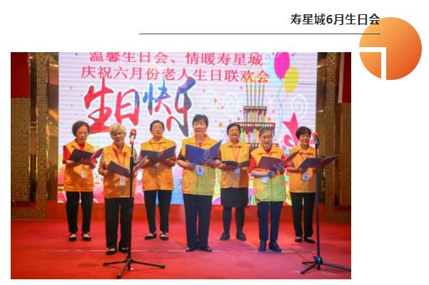 寿星城每月的生日会为园区老人搭建了一个互动交流的大平台,提升了老年人对园区的归属感和幸福感,展现出寿星城老有所养、老有所乐的良好养老社区氛围。