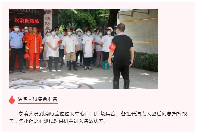 火灾扑灭后副总指挥带领所有演练人员撤离现场到康乐中心门口集合,清点人数后向总指挥汇报,最后演练顾问吴宏雷经理对火灾事故应急演练现场点评。