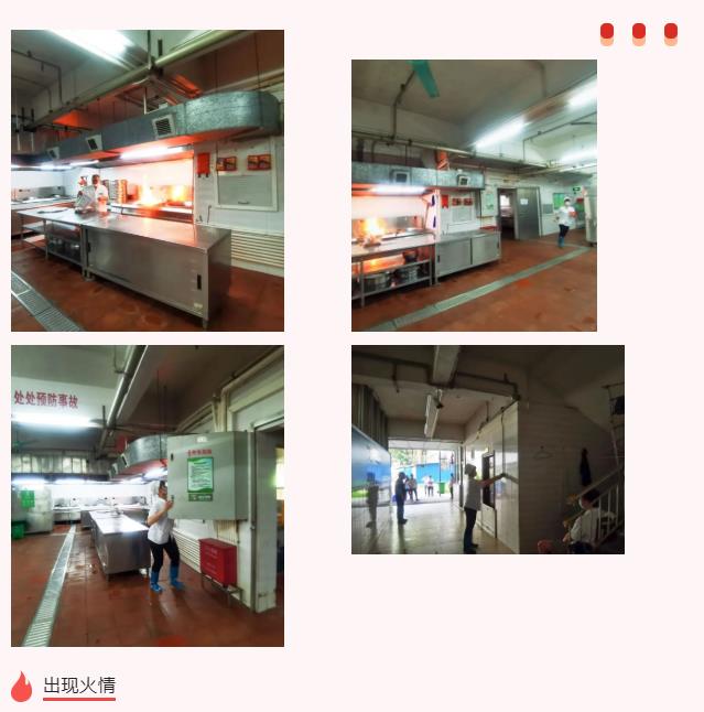 厨房人员发现火险后,大声呼救“油锅起火了”,同时立即关闭抽风机、送风机、炉具总开关,并跑步到火警手动按钮处按下报警开关