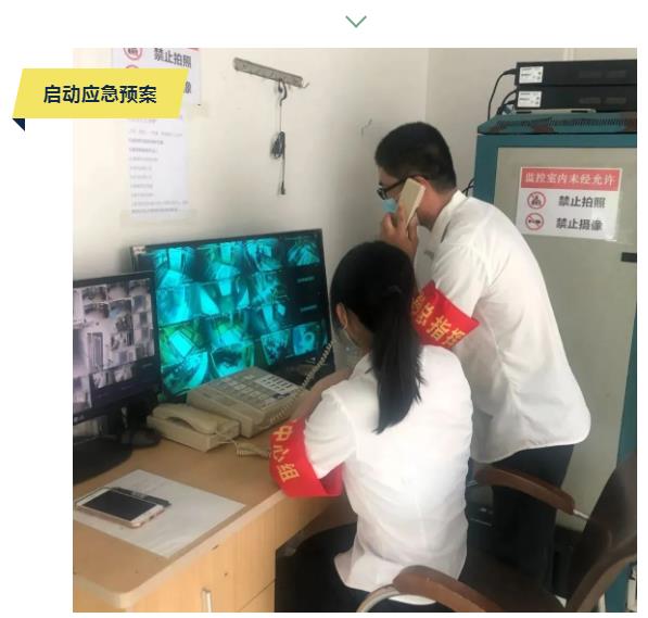 监控中心值班人员接警后通过五方通话安抚被困人员,询问人员身体状况,通过监控画面观察轿厢内情况,并及时向总指挥报告。