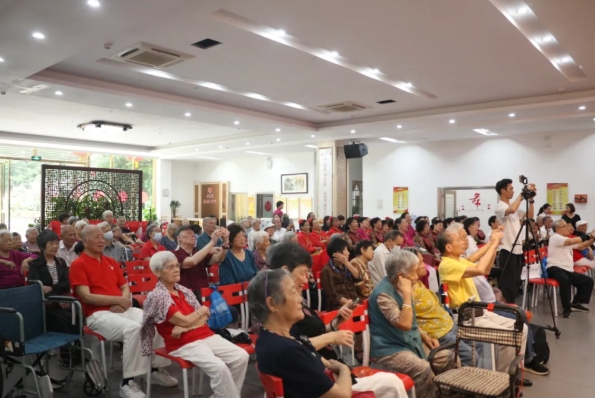 活动当天,微风轻拂脸庞,带来了初夏的清新与舒适。寿星城内康乐中心会场布置得既庄重又喜庆,整个场地弥漫着节日的欢乐氛围。在场观众精神焕发,他们的脸上洋溢着幸福和期待的笑容,等待着联欢活动的开始。