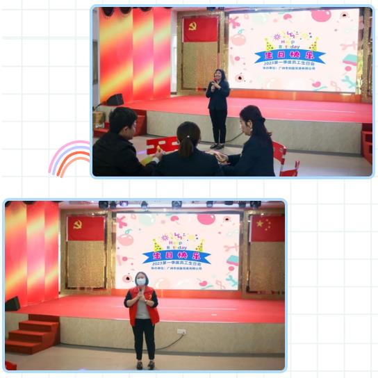2023年3月13日上午,主持人在寿星城康乐中心为所有寿星送上诚挚的问候与真诚的祝福,希望各位寿星在新的一年新的一岁里更上一层楼。当日一同出席活动还有为我们准备了众多生日礼物的协办单位广州市创盈贸易有限公司。