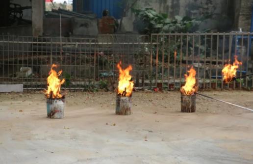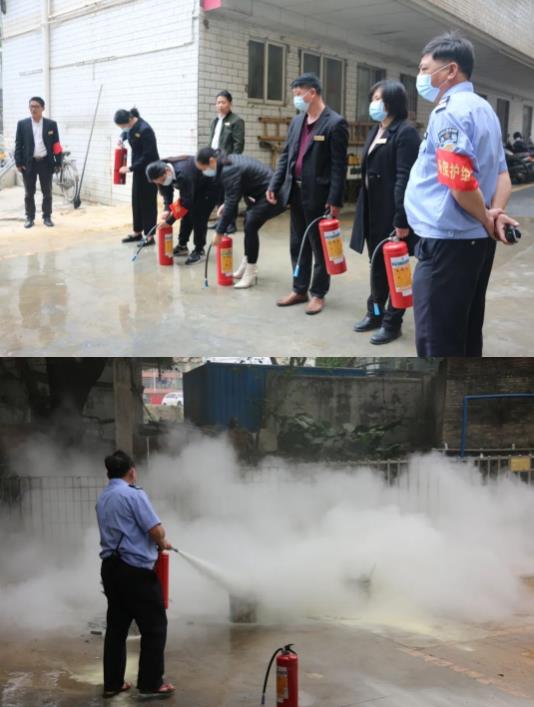 全体人员在完成消防应急演练之后,于演戏地点进行灭火器实操演练。