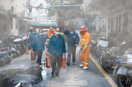 灭火组使用灭火器进行灭火,水枪组在F座侧门消防栓接水灭火,同时,总指挥命令火灾事故现场保护检查组赶赴现场增援。