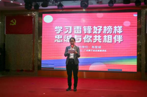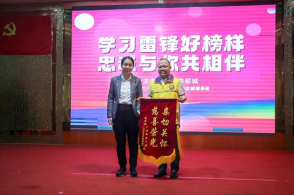 寿星城业务部刘经理向广东狮子会忠诚服务队赠送锦旗,以此表彰广东狮子会忠诚服务队的雷锋精神。