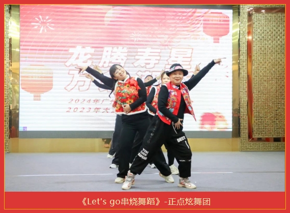 伴随着正点炫舞团带来的超燃Let′s go串烧开场舞表演,联欢会就此拉开了序幕。动感的旋律,炫酷的舞姿引得全场观众鼓掌欢呼。